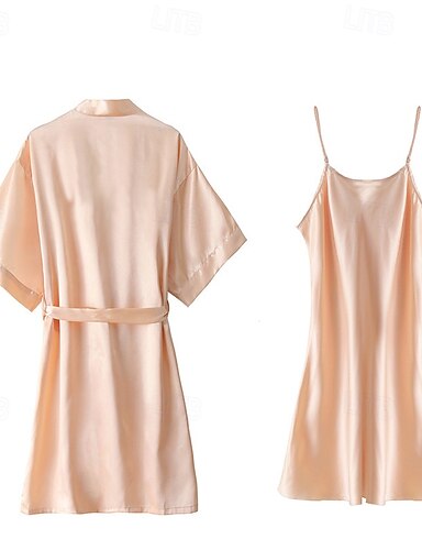 Damen Robe Lässig Weich Satin Einfarbig Spitze Täglich Heim Bett Halbarm V Ausschnitt Weiß Champagner Rosa Wein Sommer Lässiger Schnitt