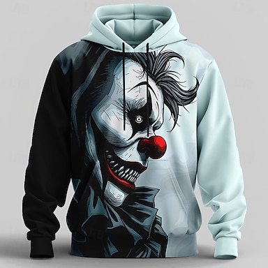 Herren Clownsmaske 3D Kapuzensweatshirt Pullover Punk Übertrieben Gotisch Lässig Langarm Rundhalsausschnitt Mit Kapuze Club Streetwear Schwarz Kordelzug Herbst Winter Designer S M L XL XXL XXXL