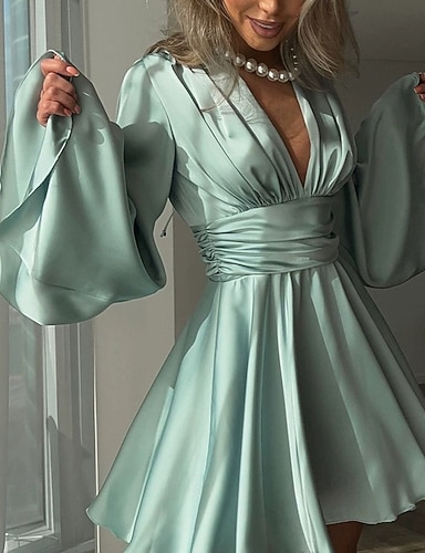 Damen Minikleid Cocktailkleid Satinkleid Unterkleid Elegant Mode Modern Outdoor Party Party-Abendmode Schlank Einfach Langarm V Ausschnitt Schwarz Weiß Staubiges Blau Braun Frühling Herbst