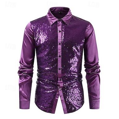 1970er 1980er Glänzend Metallisch Hemd Hippie Disco Pailletten Kostüm Herren Karnevalskostüm Halloween Karneval Neujahr Party Club Pride Parade Erwachsene Hemd