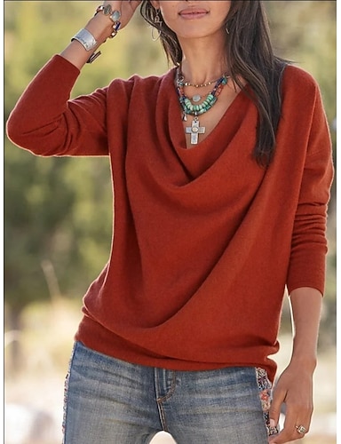 Damen Pullover Sweater Mode Streetwear Lässig Grafik V-Ausschnitt Glitzer Übergroß Gestrickt Langarm Regulär Oberteile Strick Outdoor Alltag Rot Grün Frühling Herbst