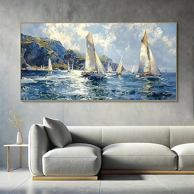 Abstraktes Segelboote-Leinwandgemälde, handgemalte Wandkunst, nautisches Ölgemälde auf Leinwand, handgefertigtes modernes Ozeangemälde, Wandkunst, großes Seestück, Segelboote, Gemälde für Wohnzimmer,