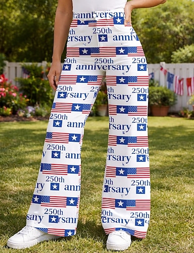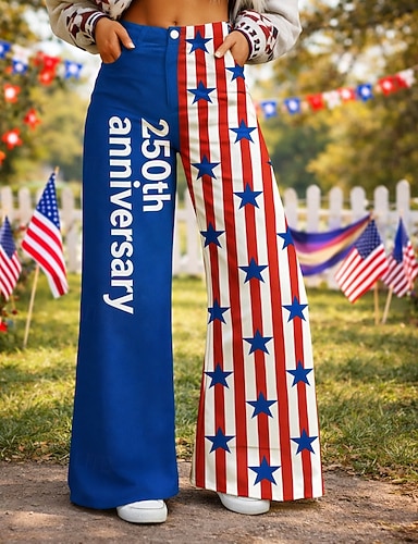 250-jähriges Jubiläum USA Retro Vintage 1970er Hose Hose mit weitem Bein Hippie Disco Hohe Taille Kostüm Damen Maskerade 4. Juli Unabhängigkeitstag Erwachsene Hose
