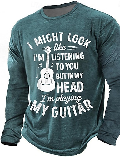 Herren Gitarre Lustiger Slang T Shirt Langarm T-Shirt 3D-Druck Rundhalsausschnitt Hemd Mode Täglich Basic Lässig Täglich Straße Blau Schwarz Grün Sommer Frühling Bekleidung S M L XL XXL XXXL