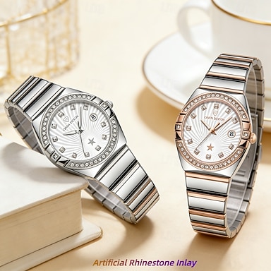 1pcs Neue Edelstahl Band Trend Damen Uhr Leuchtender Kalender Wochenanzeige Einfache Freizeit Lebensreise Quarz Uhr Geburtstag Muttertag Geschenk Feiertags Damen Sport Uhr