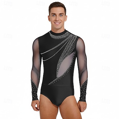 Herren Latein Tanz Trikot Shirt Top Eiskunstlauf Kostüm V-Ausschnitt Langarm Satin Bodysuit Ballsaal Shirts