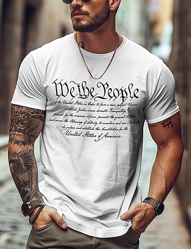 Herren T Shirt T-Shirt Kurzarmshirt Kurzarm Rundhalsausschnitt Sommer Amerikanische US-Flagge Mode Designer Basic Druck Urlaub Straße Ausgehen Blau Schwarz Weiß Top T-Shirt für Herren