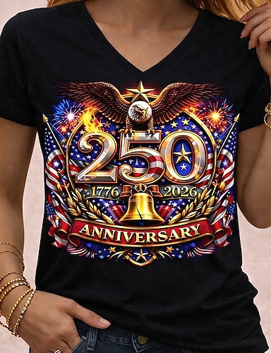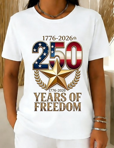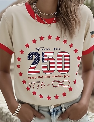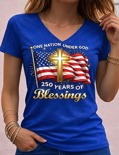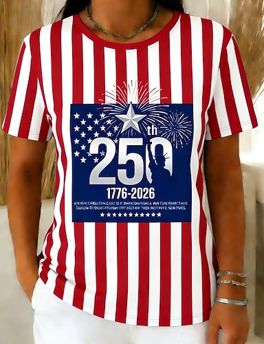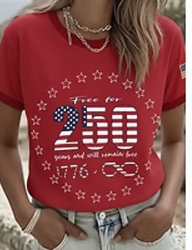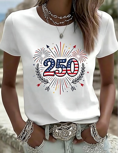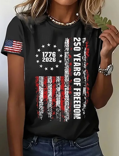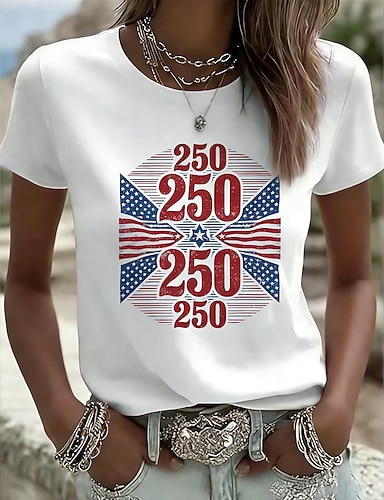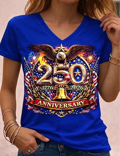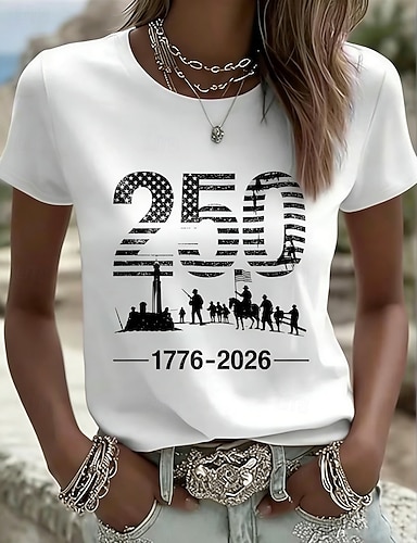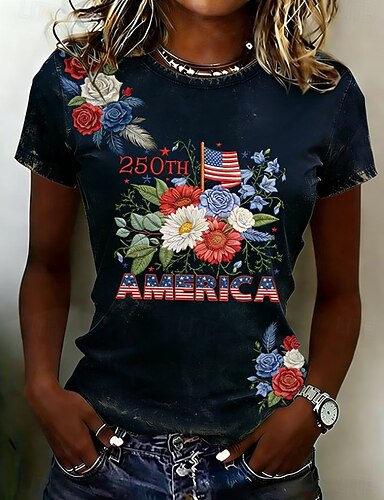 Unabhängigkeitstag Amerikanisches 250. Jubiläum Patriotisches Damen T-Shirt Grafik Flagge Vintage Stilvoll Leger Kurzarm Crew Neck Reguläre Tops Täglich Wochenende Druck Blau Weiß Rot Königsblau