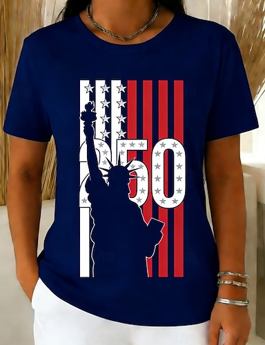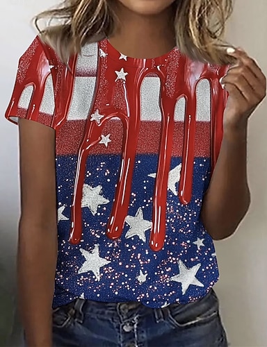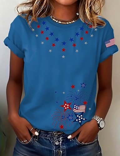 Amerikanischer Unabhängigkeitstag Damen T Shirt T-Shirt Druck Grafik Stilvoll Klassisch Lässig Kurzarm Rundhalsausschnitt Normale Oberteile Täglich Sport Ausgehen Blau Rote Sommer Frühling