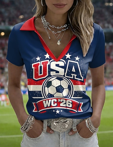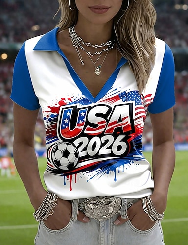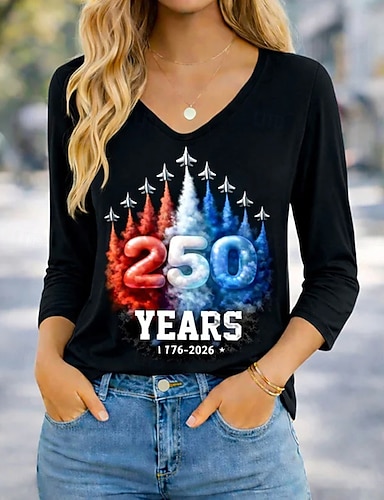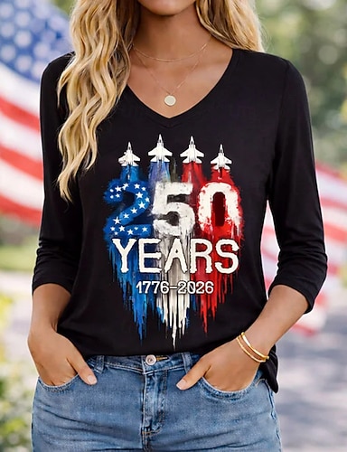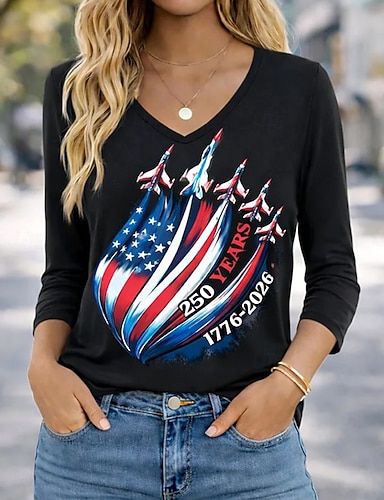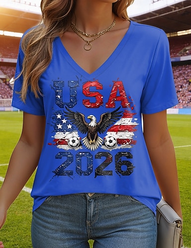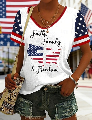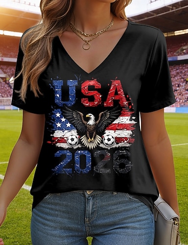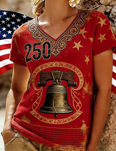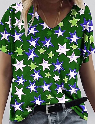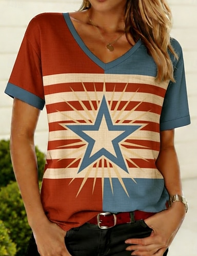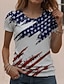 Amerikanischer Unabhängigkeitstag Damen T Shirt T-Shirt Druck Grafik Stilvoll Klassisch Lässig Kurzarm V Ausschnitt Normale Oberteile Täglich Ausgehen Wochenende Blau Schwarz Weiß Rote Grün Sommer