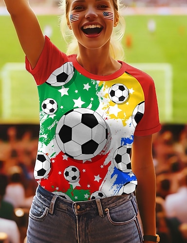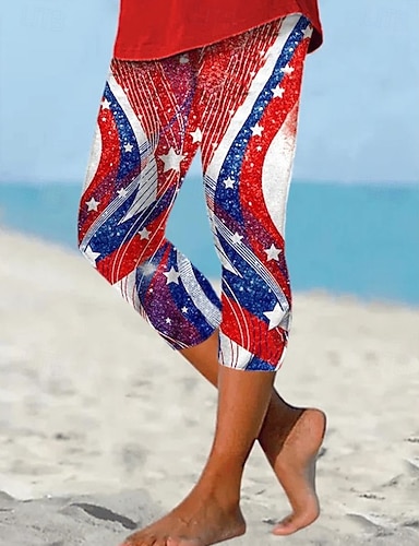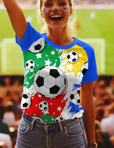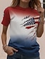 Amerikanischer Unabhängigkeitstag Damen T Shirt T-Shirt Druck Grafik Stilvoll Klassisch Lässig Kurzarm Rundhalsausschnitt Normale Oberteile Täglich Ausgehen Wochenende Blau Schwarz Weiß Rote Grün