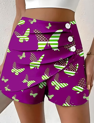 Amerikanischer Unabhängigkeitstag Damen T Shirt Druck Grafik Flagge Stilvoll Klassisch Lässig Kurzarm V Ausschnitt Normale Oberteile Täglich Rote Purpur Grün Sommer Frühling