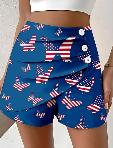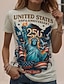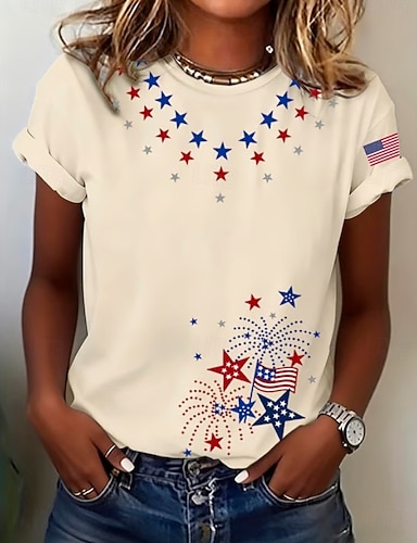 Amerikanischer Unabhängigkeitstag Damen T Shirt T-Shirt Druck Grafik Stilvoll Klassisch Lässig Kurzarm Rundhals Normale Oberteile Täglich Ausgehen Wochenende Blau Schwarz Weiß Rote Khaki Sommer