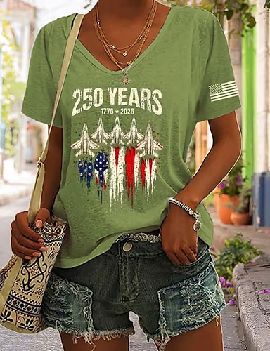 Unabhängigkeitstag Patriotische Damen T-Shirt Druck Grafik Amerikanische Flagge Stilvoll Klassisch Leger Kurzarm V-Ausschnitt Reguläre Oberteile Täglicher Druck Rot Purpur Grün Sommer Frühling