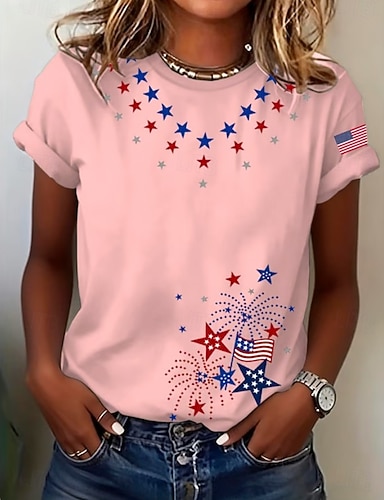 Amerikanischer Unabhängigkeitstag Damen T Shirt Druck Grafik Buchstabe Amerikanische Flagge Stilvoll Klassisch Lässig Kurzarm Rundhalsausschnitt Normale Oberteile Täglich Blau Schwarz Weiß Rosa Rote