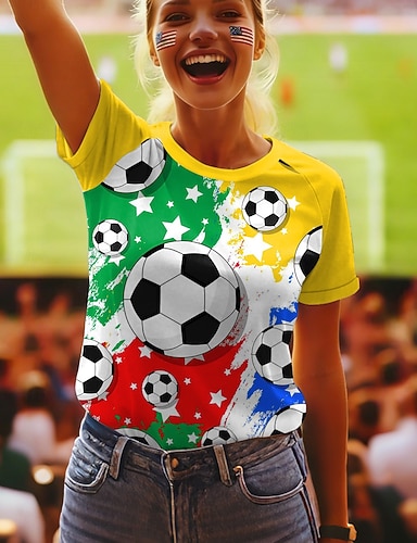 Amerikanischer Unabhängigkeitstag Damen T Shirt Druck Grafik Amerikanische Flagge Vintage Stilvoll Klassisch Kurzarm Rundhalsausschnitt Normale Oberteile Täglich Blau Gelb Rote Sommer Frühling