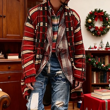Herren Hässlicher Weihnachtspullover Strickjacke Strickpullover Gedrehtes Stricken Standard Knopf hoch Feste Farbe Kargen Modisch Klassisch Freizeitskleidung Verabredung Bekleidung Herbst Winter Rote