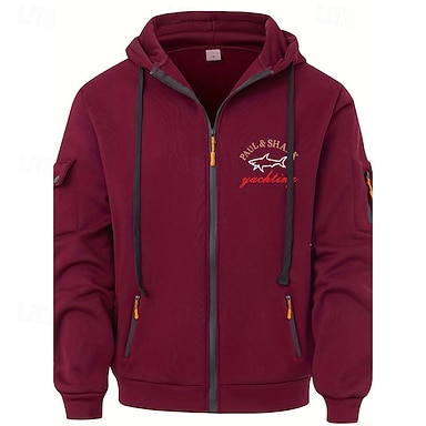 Herren Kapuzensweatshirt Vollreißverschluss-Kapuzensweatshirt Schwarz Wein Marineblau Hellgrau Mit Kapuze Tiermotiv Buchstabe Tasche Sport & Outdoor Täglich Ferien Polyester Streetwear Basic Lässig