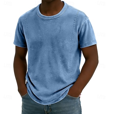 Herren Hemd aus 100 % Baumwolle in Säurewaschung T-Shirt Kurzarm Vintage Einheitliche Farbe Retro Vintage Lässig Vintage-Stil Stückgefärbt Verblasst Rundhalsausschnitt Lässig Täglich Heim Frühling