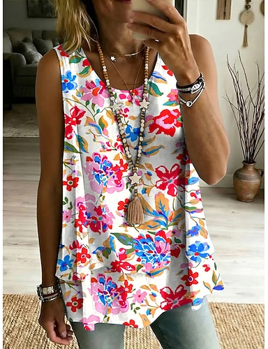 Damen Tank Top Patchwork Geschichtet Druck Blumen Grafik Elegant Lässig Ärmellos V Ausschnitt Normale Oberteile Lässig Täglich Blau Rote Purpur Orange Sommer Frühling