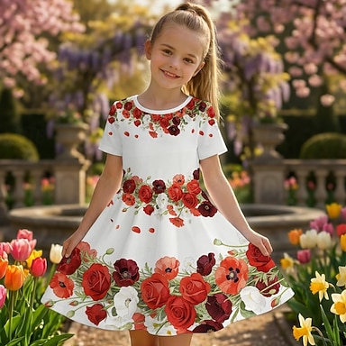 Mädchen' 3D Blumen Grafik Kleid Kurzarm 3D-Druck Sommer Frühling Täglich Urlaub Party Niedlich Basic Lässig Kinder 4-12 Jahre Freizeitkleid A Linie Kleid Knielang Normale Passform