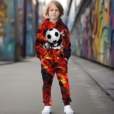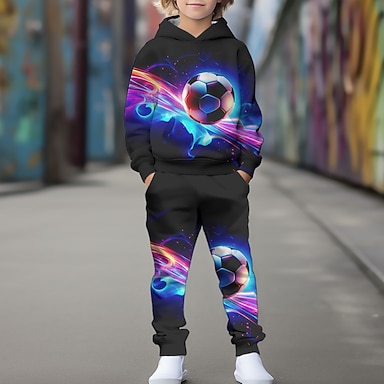 Jungen 3D Fußball Kapuzenshirt Mantel Oberbekleidung Langarm 3D-Druck Herbst Winter Modisch Strassenmode Cool Polyester kinderkleidung 3-12 Jahre Outdoor Casual Täglich Regular Fit