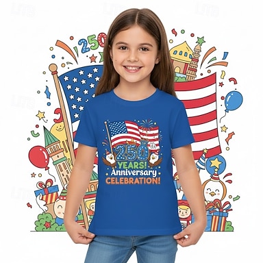 Mädchen 3D Grafik Flagge 250-jähriges Jubiläum T-Shirt Kurzarm 3D-Druck Sommer Frühling Sport Mode Streetwear Kinder 4-12 Jahre Rundhalsausschnitt Lässig Täglich Outdoor Normale Passform