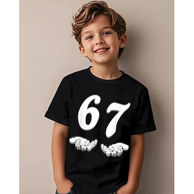 Unisex Jungen 3D Grafik Lustiger Slang 67 T-Shirt Kurzarm 3D-Druck Sommer Frühling Sport Mode Streetwear Kinder 4-12 Jahre Rundhalsausschnitt Outdoor Lässig Täglich Normale Passform