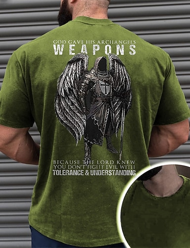 Herren Kurzarm Grafik T-Shirt Engel Krieger "Gott gab seinen Erzengeln Waffen" Lifestyle Aussage Tee