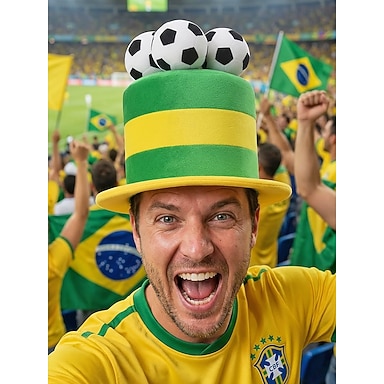 Fußball-Fan-Zylinder für Herren in verschiedenen Farben, aus Polyester, mit Flaggenmotiv. Ideal für Fußballspiele, Fanveranstaltungen, Teamstimmung und Spieltage.