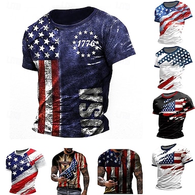 4. Juli 2026 250. Gedenktag Herren patriotisches Patriot Grafik 3D-Druck amerikanische Flagge Veteran Rundhalsausschnitt Kurzarm T-Shirt