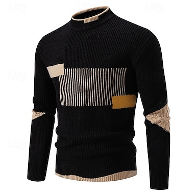 Herren Rollkragenpulli Pullover Rollkragenpullover für Herren Gerippt Stricken Cropped Strick Rollkragen Moderne zeitgenössische Freizeitskleidung Ausgehen Bekleidung Herbst Winter Schwarz Weiß M L XL