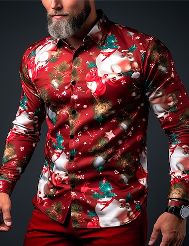 Weihnachtsmänner lustige Weihnachtsdruckhemden Weihnachtsmann Baumglocke Freizeitkleidung Ausgehen Herbst&Winter Turndown Langarm dunkelrot, weiß, rot S, M, L 4-Wege-Stretch-Stoff-Shirt