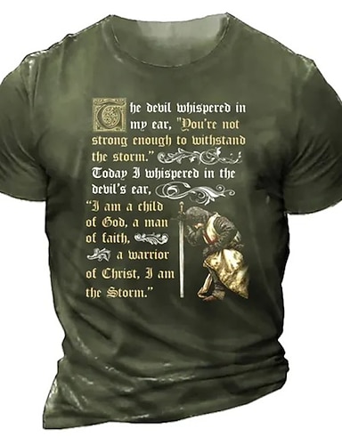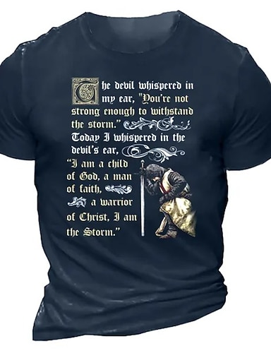 Herren Grafik Buchstabe T Shirt Christliche T-Shirts Kurzarm T-Shirt 3D-Druck Rundhalsausschnitt Hemd Vintage Mode Designer Outdoor Täglich Sport Blau Khaki Frühling & Sommer Bekleidung S M L XL 2XL