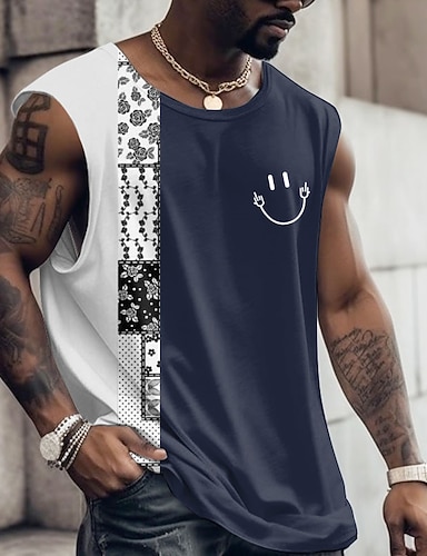 Herren Grafik Farbblock Weste Ärmelloses T-Shirt für Herren Kappenärmel T-Shirt 3D-Druck Rundhalsausschnitt Hemd Mode Designer Muskel Täglich Sport Fitnessstudio Schwarz Weiß Blau Frühling & Sommer