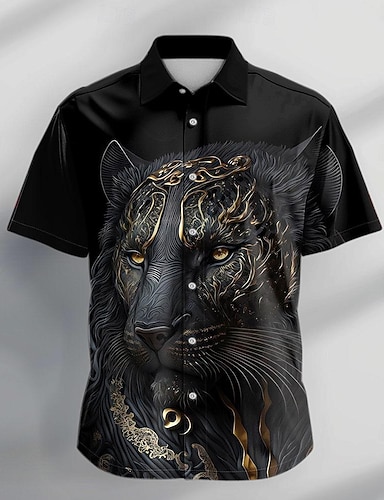 Herren Tiermotiv Tiger Hemd Knopfhemd Langarm Mode Streetwear Designer Outdoor Lässig Täglich Sommer Frühling Herbst Stehkragen Druck Blau-Grün Rote Blau Orange Grün