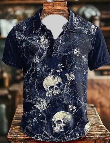 Tag der Toten Herren Schädel Fledermaus Polo Kurzarm Polo-Shirts Hemden mit Kragen Vintage Lässig Dunkel Athleisure Alltagskleidung Festival-Outfit Knöpfe Sommer Schwarz Dunkelblau Grau