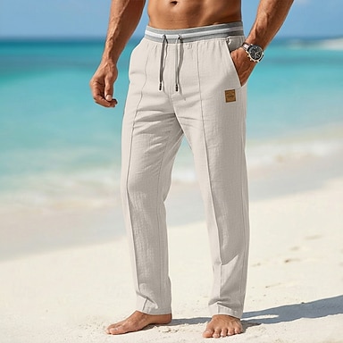 100% Leinen Herren Leinenhosen Hose Kordelzug Elastischer Bund Gerader Schnitt Einfach Komfort Atmungsaktiv Lässig Täglich Ferien Mode Klassicher Stil Beige