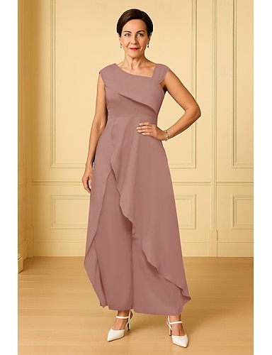 Overalls A-Linie Bodenlang Knöchellänge Ärmellos V Ausschnitt Elegant Einfach Formell Hochzeitsgast Chiffon Stretchstoff Brautmutterkleid mit Einfarbig