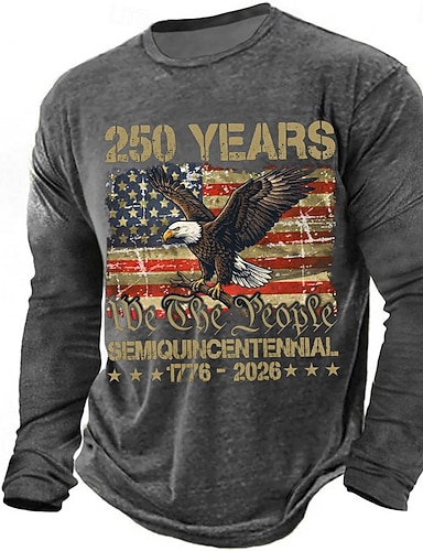 4. Juli 2026 250. Gedenktag Herren 3D-Druck Rundhalsausschnitt Langarm T-Shirt Lässig Tägliche