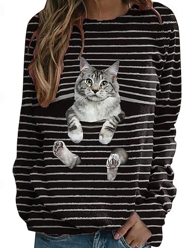 Damen Pullover Streetwear Lässig Tiermotiv Rundhalsausschnitt Gestrickt Langarm Normale Oberteile Stricken Täglich Ferien Ausgehen Schwarz Weiß Herbst Winter