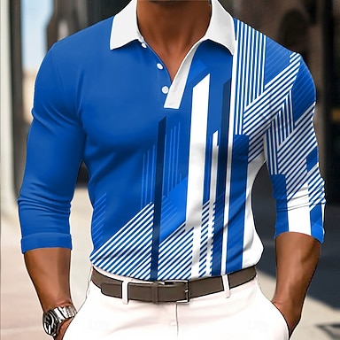 Herren Geometrisch Polo Langarm Polo-Shirts Hemden mit Kragen Business-Casual Geschäft Athleisure Alltagskleidung 3D-Druck Knöpfe Frühling Herbst Winter Rote Blau Orange