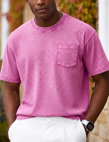 Herren T Shirt Henley Hemd Hemd aus 100 % Baumwolle in Säurewaschung T-Shirt Kurzarm Rundhalsausschnitt Herbst Winter Sommer Frühling Einfach Vintage Streetwear Retro Tasche Stückgefärbt Lässig Heim
