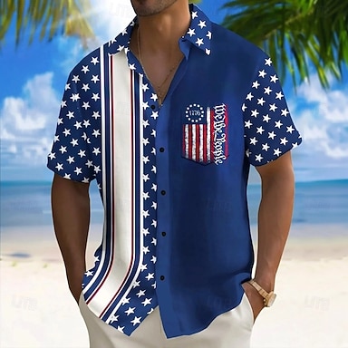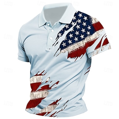 4. Juli 2026 250. Herren Amerikanische US-Flagge Poloshirts Kurzarm Polo-Shirts Revers Lässig Athleisure Knöpfe Frühling & Sommer Blau Weiß Gelb