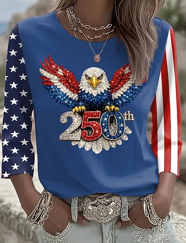 Amerikanischer Unabhängigkeitstag Damen T Shirt Druck Grafik Flagge Buchstabe Vintage Stilvoll Klassisch Kurzarm Rundhalsausschnitt Normale Oberteile Täglich Blau Schwarz Weiß Rote Marineblau Sommer