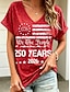 Amerikanischer Unabhängigkeitstag Damen T Shirt Druck Grafik Flagge Buchstabe Stilvoll Klassisch Lässig Kurzarm Rundhalsausschnitt Normale Oberteile Täglich Blau Weiß Rote Himmelblau Sommer Frühling
