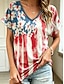 Amerikanischer Unabhängigkeitstag Damen T Shirt Druck Grafik Amerikanische Flagge Vintage Stilvoll Klassisch Kurzarm V Ausschnitt Normale Oberteile Lässig Täglich Wochenende Blau Schwarz Rote Sommer