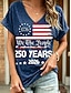 Amerikanischer Unabhängigkeitstag Damen T Shirt Druck Grafik Amerikanische Flagge Vintage Stilvoll Klassisch Kurzarm V Ausschnitt Normale Oberteile Lässig Täglich Wochenende Blau Weiß Rote Sommer