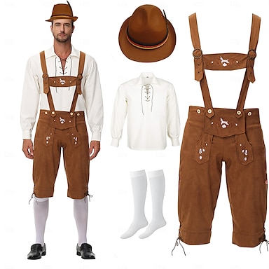 Oktoberfest Lederhosen Hemd Bayerisch Bayerisch Deutsch Wiesn Herren Stoff im traditionellen Stil Bluse Shorts Hut