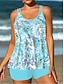 Damen Badeanzug Tankini Zweiteilig Shorts Bademode Bauchkontrolle Hohe Taille Schlank Rückenfrei Urlaub Strandbekleidung Blumen Neckholder Ärmellos Badeanzüge